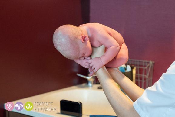 จากนั้นนางพยาบาล หรือนางผดุงครรภ์ จะอุ้มทารกให้โค้งงอเพื่อเช็คดูก่อน