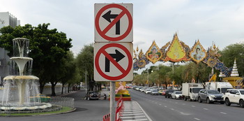 ห้ามรถทุกชนิดกลับรถไปทางขวา ไม่ว่าจะกระทำด้วยวิธีใด ๆ ก็ตาม |