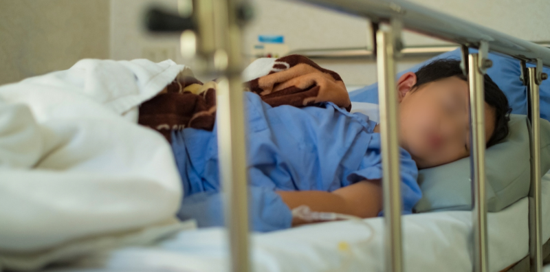 เมื่อแรกรับเข้าโรงพยาบาล อาการของเด็กน้อยอยู่ในขั้นวิกฤต มีอาการซึม ริมฝีปากเขียวคล้ำ ชีพจรเต้นอ่อน หายใจลำบาก และมีระดับออกซิเจนในเลือดต่ำมาก แพทย์ต้องรีบให้สารน้ำ ให้ออกซิเจน และส่งตัวเข้าห้องไอซียูเด็ก เพื่อรับการรักษาอย่างเร่งด่วนที่สุด