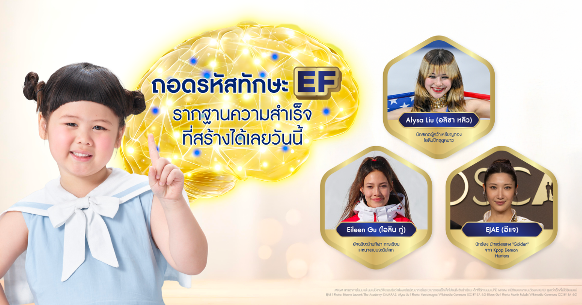 เบื้องหลังความเก่งและความรับผิดชอบแบบ ‘มืออาชีพ’ ของน้องเกลนั้น คือ การได้รับการพัฒนาทักษะ EF มาอย่างดี ซึ่งผู้เชี่ยวชาญและงานวิจัยระดับโลกยืนยันแล้วว่า ทักษะนี้คือ ทักษะเพื่อความสำเร็จ’ อย่างแท้จริง และเป็นแต้มต่อสำคัญที่ลูกควรมีควบคู่ไปกับ IQ และ EQ ที่สำคัญการเลือกโภชนาการคุณภาพที่มีสารอาหารอย่าง MFGM ซึ่งมีงานวิจัยรองรับว่าช่วยเพิ่มระดับ IQ และEF ได้จริง