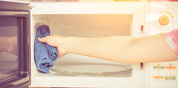 ผ้าขนหนูที่ใช้เช็ดทำความสะอาดเตาไมโครเวฟ มักจะมีทั้งคราบอาหารและคราบน้ำมันเกาะติด หากปล่อยทิ้งไว้นานก็อาจกลายเป็นแหล่งเพาะเชื้อโรคได้ ดังนั้นจึงควรทำความสะอาดผ้าขนหนูสำหรับเช็ดเตาไมโครเวฟอย่างสม่ำเสมอ ด้วยการนำผ้ามาแช่ในน้ำร้อนที่ผสมน้ำส้มสายชูและน้ำยาล้างจาน โดยแช่ทิ้งไว้ประมาณ 1 ชั่วโมง ก่อนจะนำไปซักและตากจนแห้งสนิทตามปกติ