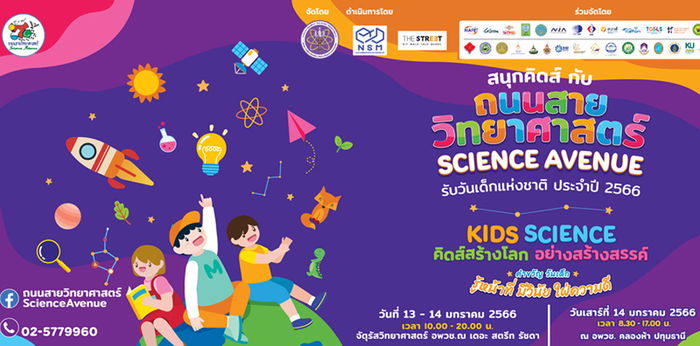 กระทรวงการอุดมศึกษา วิทยาศาสตร์ วิจัย และนวัตกรรม โดย องค์การพิพิธภัณฑ์วิทยาศาสตร์แห่งชาติ (อพวช.) จัดงาน “ถนนสายวิทยาศาสตร์ รับวันเด็กแห่งชาติ ประจำปี 2566” ภายใต้แนวคิด “KIDS SCIENCE คิดส์สร้างโลก อย่างสร้างสรรค์” ในรูปแบบของสถานีแห่งการเรียนรู้ทางวิทยาศาสตร์ สำหรับผู้ปกครองท่านใดที่มีบุตรหลานที่ชอบวิทยาศาสตร์ห้ามพลาด! รีบจูงมือบุตรหลานมา ถนนสายวิทยาศาสตร์ ประจำปี 2566 รับวันเด็กแห่งชาติ ที่ศูนย์ใกล้บ้านได้เลย