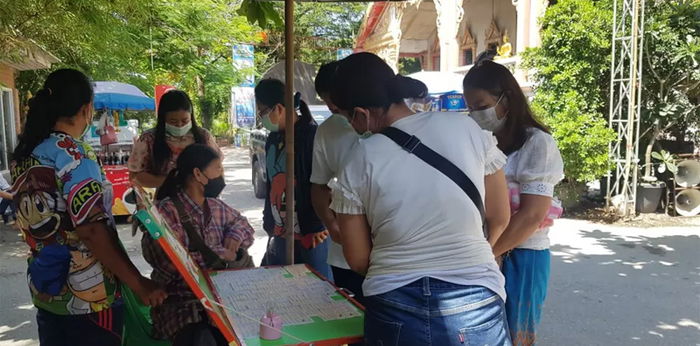 บริเวณสำนักงานสมาคมสายธารสะพานบุญส่งผู้เสียชีวิตฟรีทั่วประเทศ ต.บ้านฉาง อ.บ้านฉาง จ.ระยอง ตลอดทั้งวันมีบรรดาคอหวยทั่วทุกสารทิศ เดินทางมากราบไหว้ขอโชคลาภ ขอเลขเด็ด องค์ท้าวเวสสุวรรณที่ประดิษฐาน อยู่ 2 ปาง เป็นปางจตุโลกบาล และปางราชันทรัพย์ 6 กร ที่มีหนึ่งเดียวในประเทศ