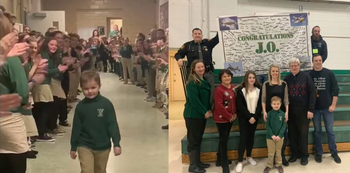 เมื่อร่างกายกลับมาแข็งแรง เจโอ หนูน้อยหัวใจแกร่ง เดินกลับเข้าสู่รั้วโรงเรียน St. Helen Catholic อีกครั้ง สิ่งที่รอเขาอยู่คือเพื่อนร่วมชั้นที่ยืนเรียงแถวปรบมือดังกึกก้อง (Standing Ovation) ต้อนรับ “ฮีโร่” ของพวกเขากลับบ้าน น้องเดินผ่านเพื่อนๆ ด้วยรอยยิ้มเขินๆ ก่อนจะโผเข้ากอดคุณพ่อคุณแม่ที่เป็นลมใต้ปีกให้เขาเสมอมา