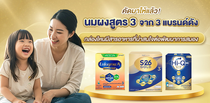 คัดมาให้แล้ว นมผงเด็กสูตร 3 แบรนด์ดัง S-26 GOLD 3 , Enfagrow A+ MindPro 3, Hi-Q Plus Super Gold 3 เจาะลึกสารอาหารพัฒนาสมองเพื่อลูกเติบโตสมวัย