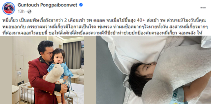 ไม่มีพ่อแม่คนไหนอยากเห็นลูกน้อยป่วยเป็นไข้ ยิ่งถ้าหากเจ็บป่วยเป็นโรคร้ายแรง ก็ยิ่งเหมือนฟ้าผ่ากลางใจ เช่นเดียวกับ “กัน จอมพลัง” นักเคลื่อนไหวช่วยเหลือสังคมชื่อดัง ที่กำลังเผชิญช่วงเวลาอันยากลำบาก เมื่อ “หมี่เกี๊ยว” ลูกสาววัย 2 ขวบ ป่วยเป็น ลมพิษเรื้อรัง มานานกว่า 2 เดือน เข้าออกโรงพยาบาลจนแทบจะกลายเป็นบ้านหลังที่สอง จนล่าสุดอาการทรุด ไข้ขึ้นสูงถึง 40 องศาเซลเซียส! แพทย์ยังแจ้งข่าวร้ายแรงว่า มีโอกาสเสี่ยงเป็นโรคพุ่มพวง